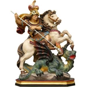 È rappresentato come un cavaliere con e senza cavallo, con un drago trafitto da una spada o da una lancia.